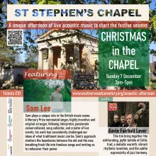 Christmas in the Chapel - a unique acoustic afternoon to start the festive seasonJoin us for a unique and thrilling afternoon of live acoustic music to start off the festive season with Mercury Prize nominated Sam Lee and the exuberant trio Gavin Fairhall Lever. Date: Sunday 7 December, 2025 |